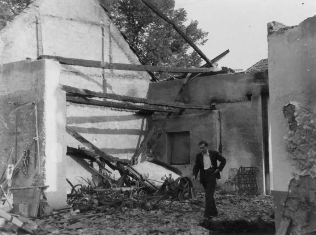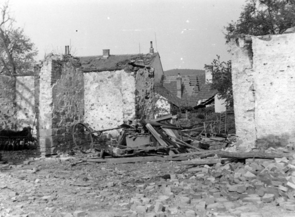 Fotky získané od Marie Kazíkové, která je nalezla na popelnice u bývalé kovárny na TišnovskÚ ulici. Fotky jsou z konce války, z roku 1945, jméno fotografa není na fotkách celé čitelné - Jan Jam...